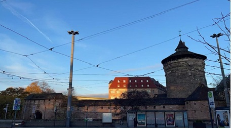埃尔朗根-纽伦堡大学法学院在埃尔朗根。但那里学生公寓的候补名单长如法典条文,租金也十分高昂。相比之下,纽伦堡的房租更为便宜,租房机会更多。因此,我最后选择租住在纽伦堡老城教堂边的留学生宿舍。这一用混凝土方盒筑成蜂窝般的居所,在功能主义的冷峻中透出奇异的平等感。而我随后的访学生活,便在纽伦堡与埃尔朗根的双城轨道间徐徐展开。